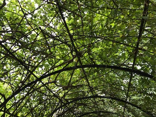 お花は咲いてませんが、ツル薔薇の誘引の仕方。