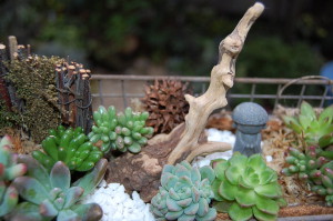 多肉のと一緒に遊び心のある寄せ植え~