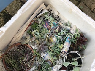 多肉がシワシワで可愛いそうなので、この子たちを外し上の写真の中にさしました。