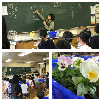 ♪小学校で花育