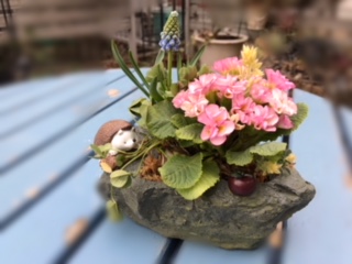 ハリネズミの付いた岩石のような器に植え込みました(*^^*)