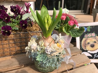 ヒヤシンス水耕栽培アレンジあと1つ♪
