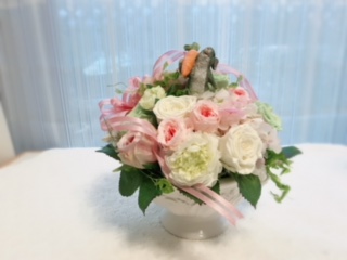 急ぎなので、現在ある花材での作成!