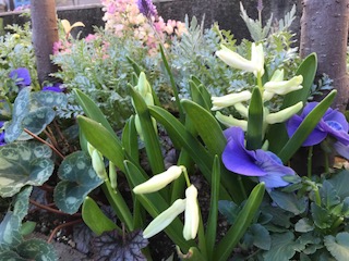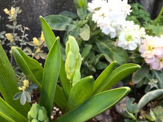 植えっぱなしのヒヤシンスの蕾が一週間前(^ ^)