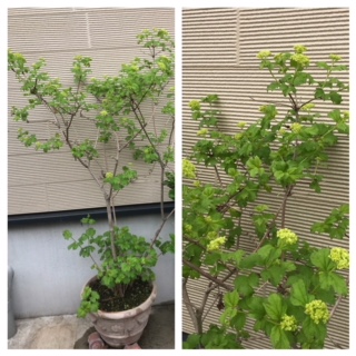 鉢植えで数年から育てているビバーナム・スノーボール(セイヨウテマリカンボク・ヴィブルナム)。