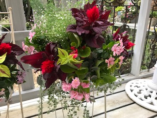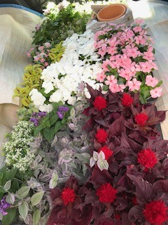 ニチニチソウ・ペンタス・コリウス・ケイトウ・ヘリオトロープ・ユーホルビア・オレガノ・トラヂィスカンティア
