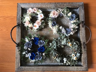 秋に向けて、シックな色のプリザーブドフラワーのリースを作ってみました♪