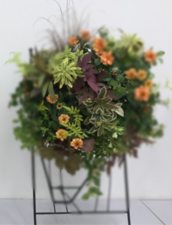 秋の草花のハンギングバスケット(^ ^)