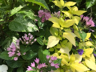 ペンタスやジニア、トレニアが沢山咲き、ハイビスカスも虫にも食われず、病気にもならず(^ ^)。