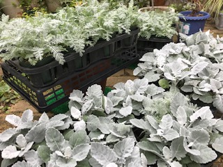 シルバーレース(写真上)丸葉シロタエギクダスティンミラー(写真下)