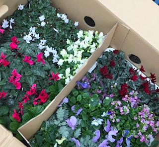 制作途中に鴻巣の飯塚園芸から花苗到着!