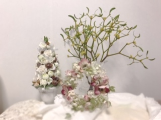 クリスマスローズ・オールドローズ・紫陽花・アイビー・小花のリース♪
