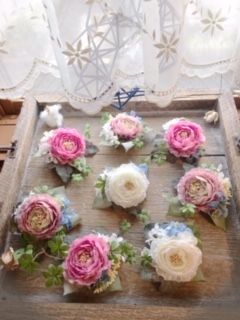 先月、コサージュのご注文を頂き作成中!