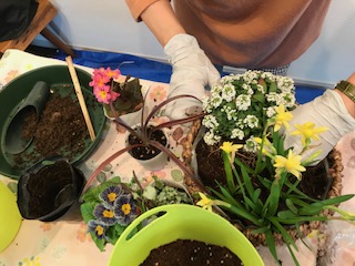 午後は、スズランを隠して植えての寄せ植えレッスン♬