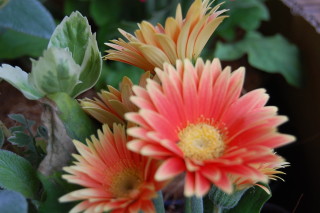 お花の寄せ植えでは、ミニガーベラを使うことに~