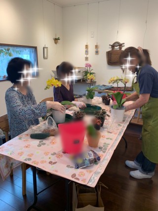 お好きな蘭を選んで頂き観葉植物と共に植えて頂きました♪
