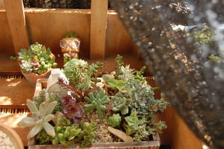 多肉植物を集め日陰を作ってあげてます。