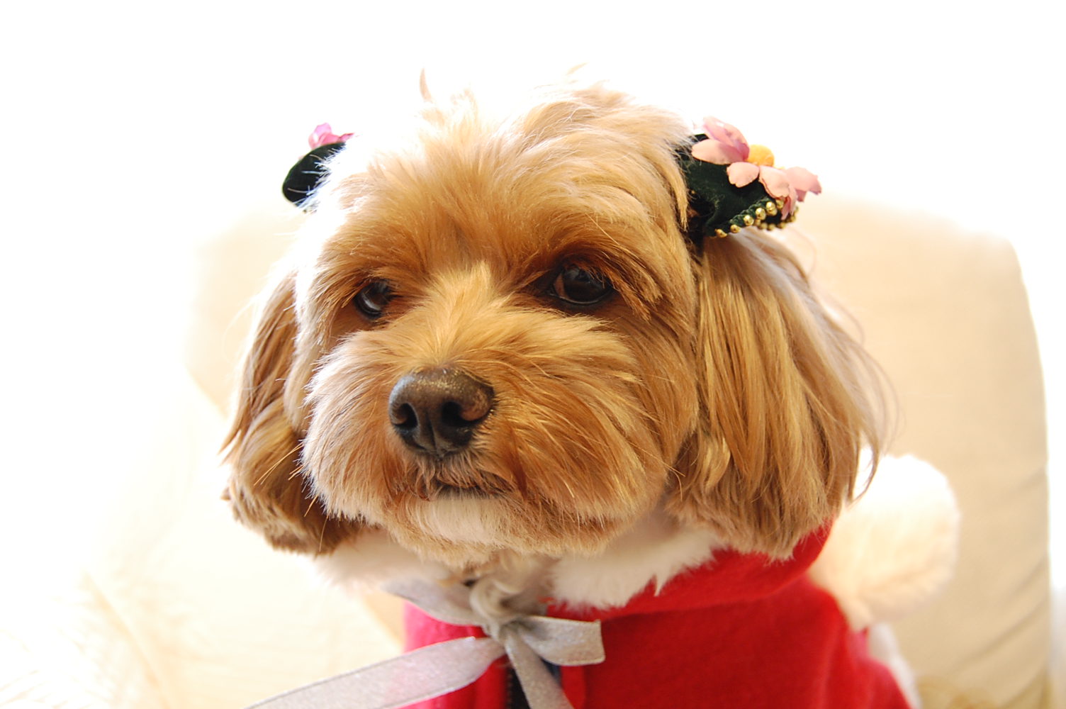 染布花を使って、ワンちゃん用の髪飾りを作り~