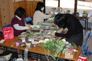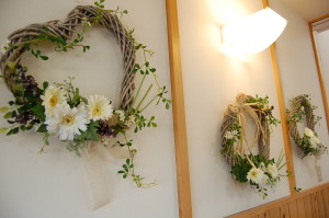 ナチュラルなハートのリースの見本を見て皆さんニコニコ(^ ^)