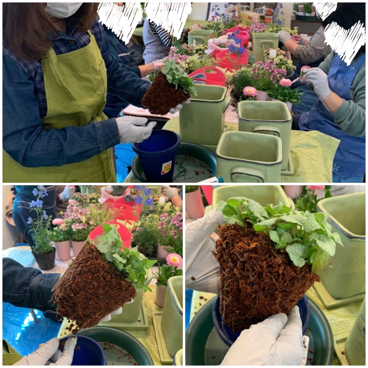 3月の寄せ植えのレッスンをギャラリーぱるけでしました。