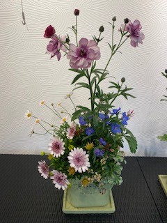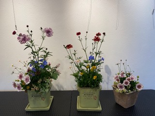 寄せ植えとブリコラージュフラワーの2作品作られた方の作品↓