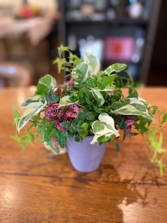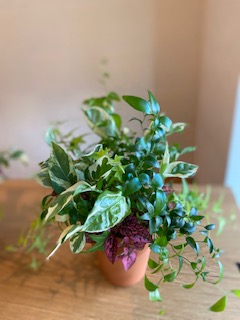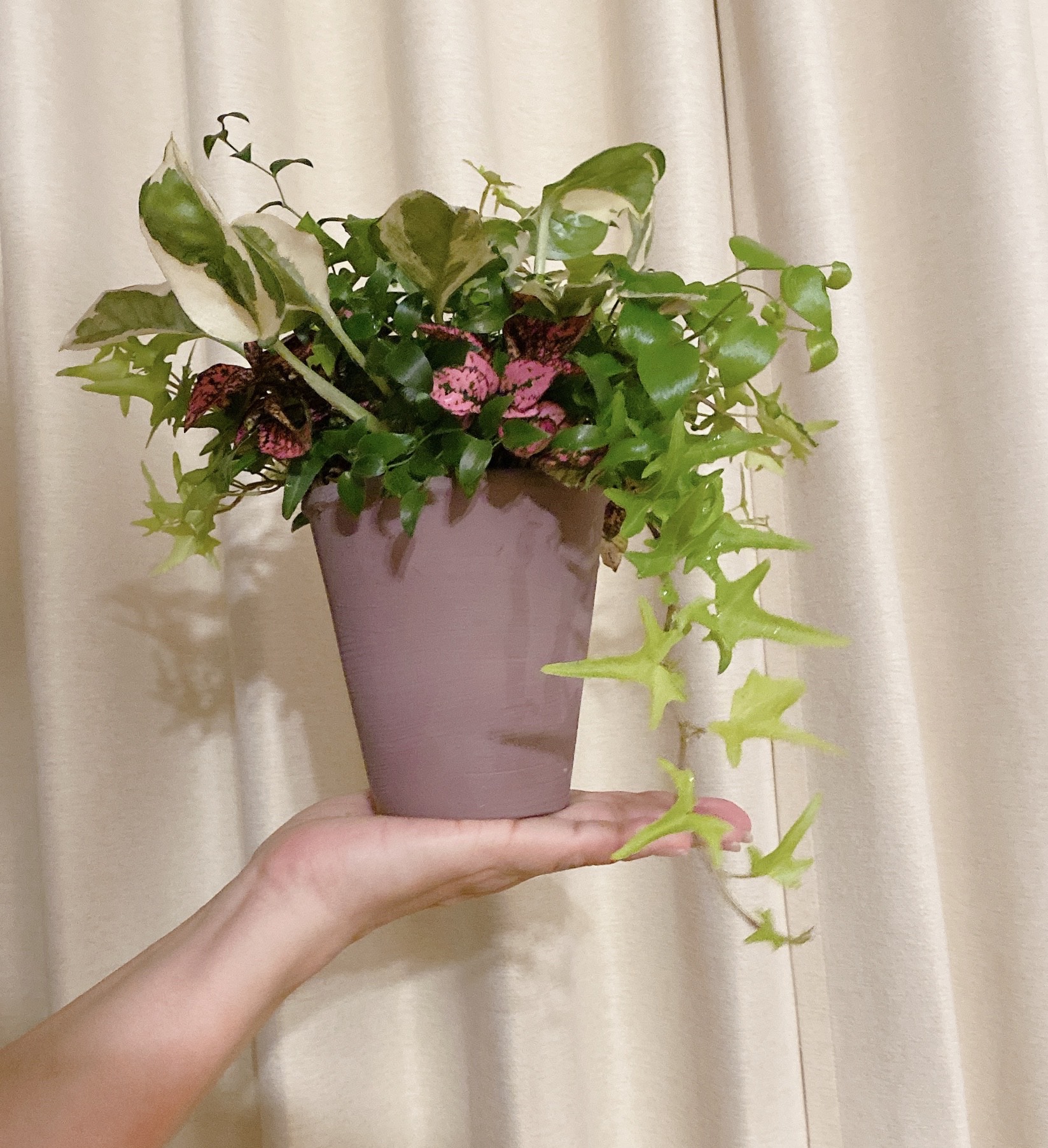 5日の日曜日は、小さな器に観葉植物をブリコラージュフラワーにしてレッスンしました♪