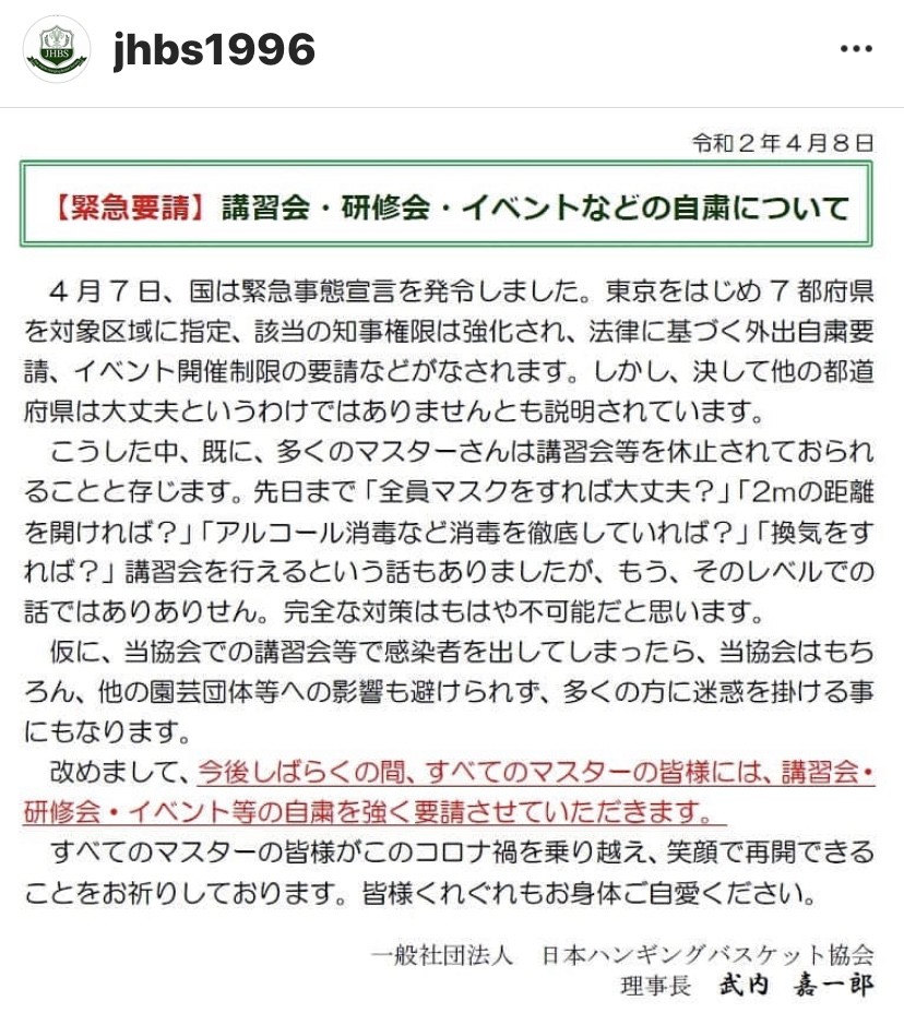 昨日、ハンギング協会理事長からのメッセージを拝見しました。