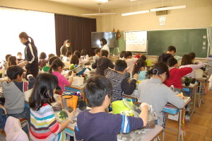 各学年、各1校時~5校時まで、各クラスで子供たちと共に楽しみます。