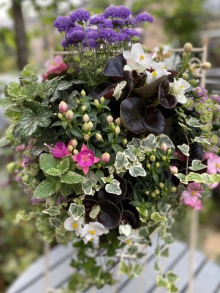 ご依頼のハンギングバスケットの植え替えをしました。
