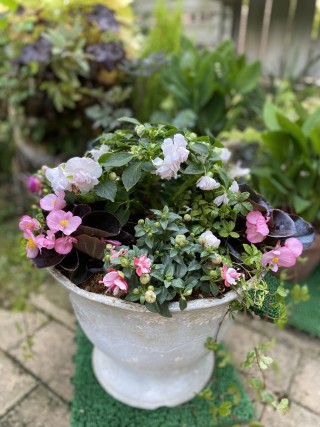 八重咲きインパテェンスを中心にして寄せ植えを作りました(^_^)