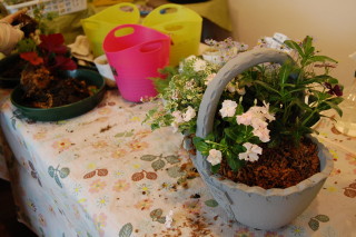 午後はご持参頂きました鉢にブリコラージュフラワー♪