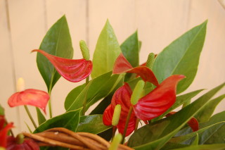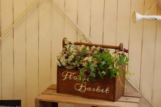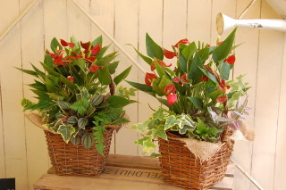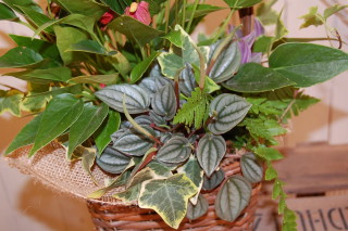 足元には、ペペロミアナポリナイト・アイビー・シダ・トラディスカンティアでブリコラージュプラワーにしました。