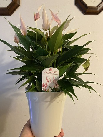 アンスリュームは白花が多いですが、優しい色のピンク色(^O^)