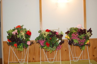 同じ花材でも、色や配置でハンギングの印象が変わります。