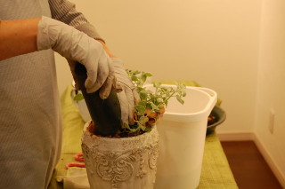 午前中は、ブラックチューリップの隠し球根を入れてビオラのブリコラージュ♪