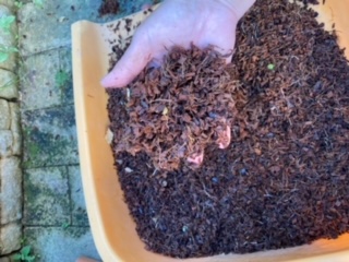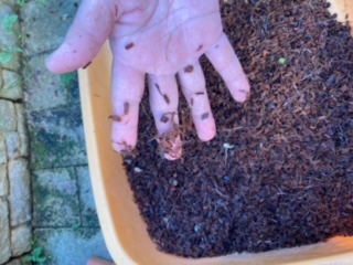 今回は、少し湿っていたので新聞紙の上に広げて乾かして、次に植え鉢に入れておきました。