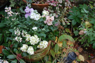 ストックは、毎年玄関前に植えていましが、今回はブリコラージュにして植えてみました♪