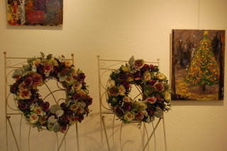今回、ギャラリーぱるけは絵画が飾られていたので、特別にすてきなリースのお写真っも撮れました。