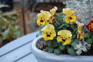 イギリスRHS/プレミアム 釉薬鉢・オバール(スカイブルー)に植えてみました。