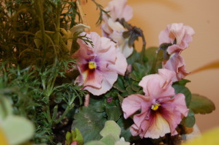 スキミアや、ぞうさんビオラ、ローダンセマムなどを選んで寄せ植え♪