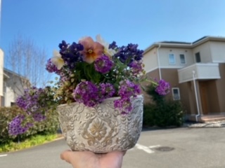 青空の下、とっても可愛いブリコラージュフラワーができました(*^^*)