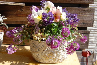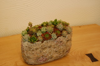 花柄の器に多肉植物の寄せ植え♪