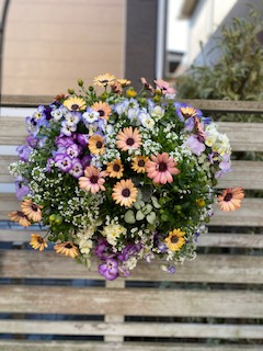 ビオラとパンジーだけよりも、オステオスペルマムが入ると華やかです!