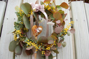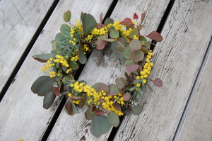 我が家のユーカリ・ポポラスと組み合わせて、ミモザを少し飾ってみました(^ ^)