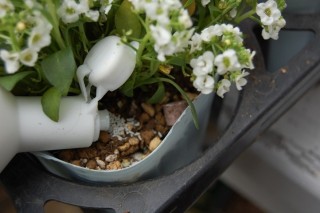 用土を足し肥料と殺虫剤を撒いています。
