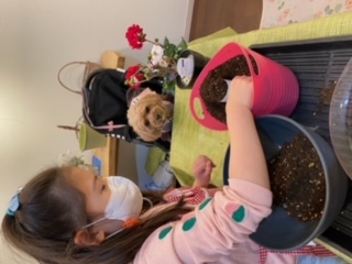 土に触り、根に触り、ポットから優しく苗を取り出し~