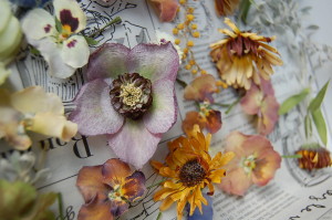 先日、我が家に咲いてた数々の花を乾燥剤につけて数日♪