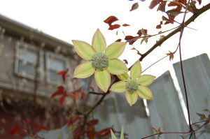 上を見上げたら(^ ^)クレマチスが開き初めてました(^ ^)