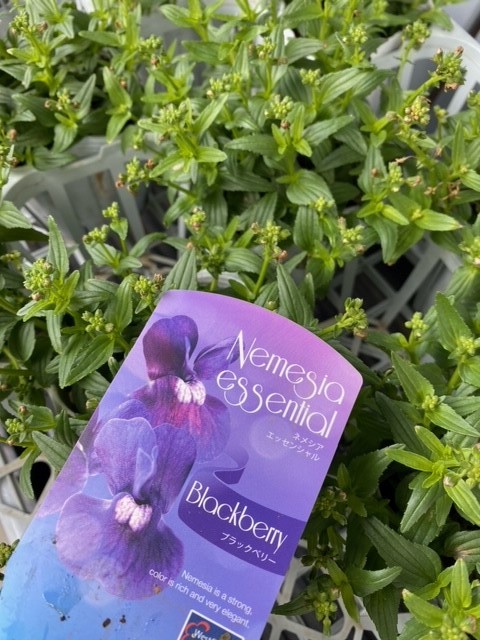 ネメシアはまだ蕾が固いですが、落ち着いた色のブルーの花が咲きます