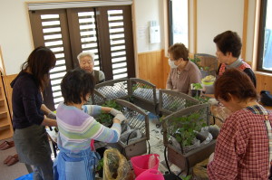 木製プランターの扱い方、ハーブの用土の説明。